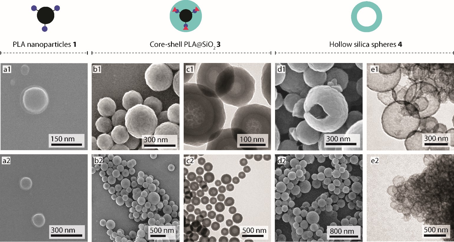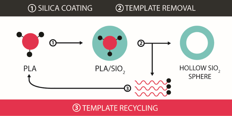 Hollow silica spheres can be obtained in a recycling process using bio-derived polylactic acid as a template, thus avoiding CO2 emissions compared to standard processes using calcination for template removal.[1]