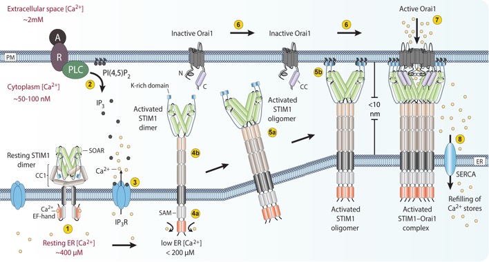A wide array of physiological functions including cell differentiation, proliferation, muscle contraction, neurotransmission and fertilization are regulated by calcium cations. Ca2+ signaling pathways that induce endoplasmic reticulum store depletion trigger a refilling process known as store operated Ca2+ entry (SOCE). Enhanced SOCE has been associated with severe diseases such as several types of cancer (e.g. breast, prostate). Deficiency of SOCE has been related to immunodeficiency and autoimmune diseases.