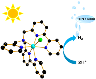 To further investigate the effect of coordination geometry on the catalytic activity, we designed a new ligand with six coordination sites that lead to the formation of an unusual heptacoordinate Co(II) complex. Under visible light irradiation in water, this complex can efficiently catalyze the production of H2 with a turnover number (TON) > 16000 mol H2 (mol cat)-1 and nearly 90% of H2 evolved within the first hour of irradiation, i.e. a turnover frequency (TOF) > 4000 mol H2 (mol cat)-1 h-1. [4]