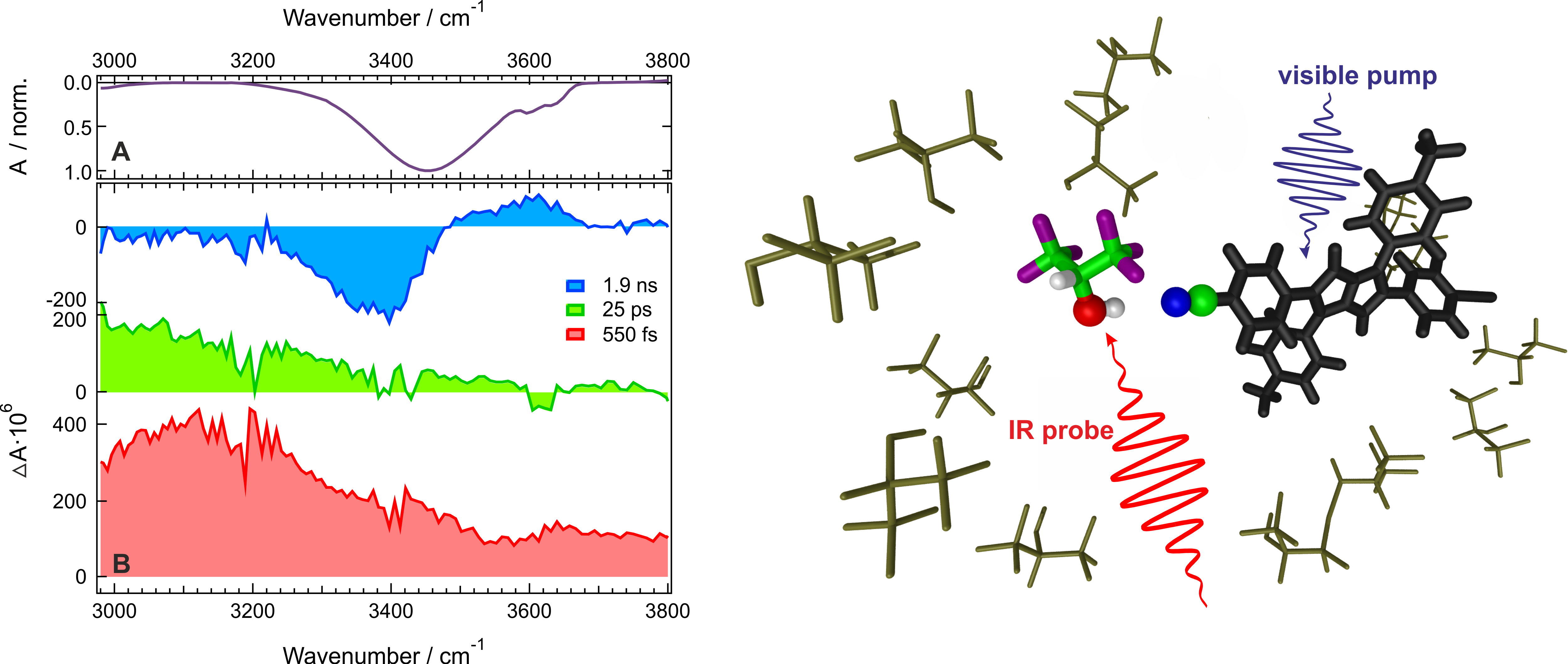 Many organic molecules undergo a substantial quenching of their charge-transfer electronic excited state in protic solvents without occurrence of excited-state proton transfer or proton-coupled electron transfer reactions. The mechanism of this H-Bond Induced Nonradiative Deactivation (HBIND) phenomenon has been elusive for a long time. By using ultrafast transient infrared spectroscopy, we show that it can be unambiguously elucidated by probing the local vibrational modes of solvent molecules coupled to the chromophore. Using such ‘solute-pump/solvent-probe’ approach reveals all relevant molecular steps, such as high initial coupling to the H-bonded solvent molecules, symmetry breaking, H-bond strengthening, and excitation energy dissipation to the solvent molecules. Our data reveal the key role of both solute-solvent H-bond strength and solvent-solvent intermolecular coupling for the efficient HBIND. Polarization-resolved experiments give an additional insight into the structure of a reactive intermediate.