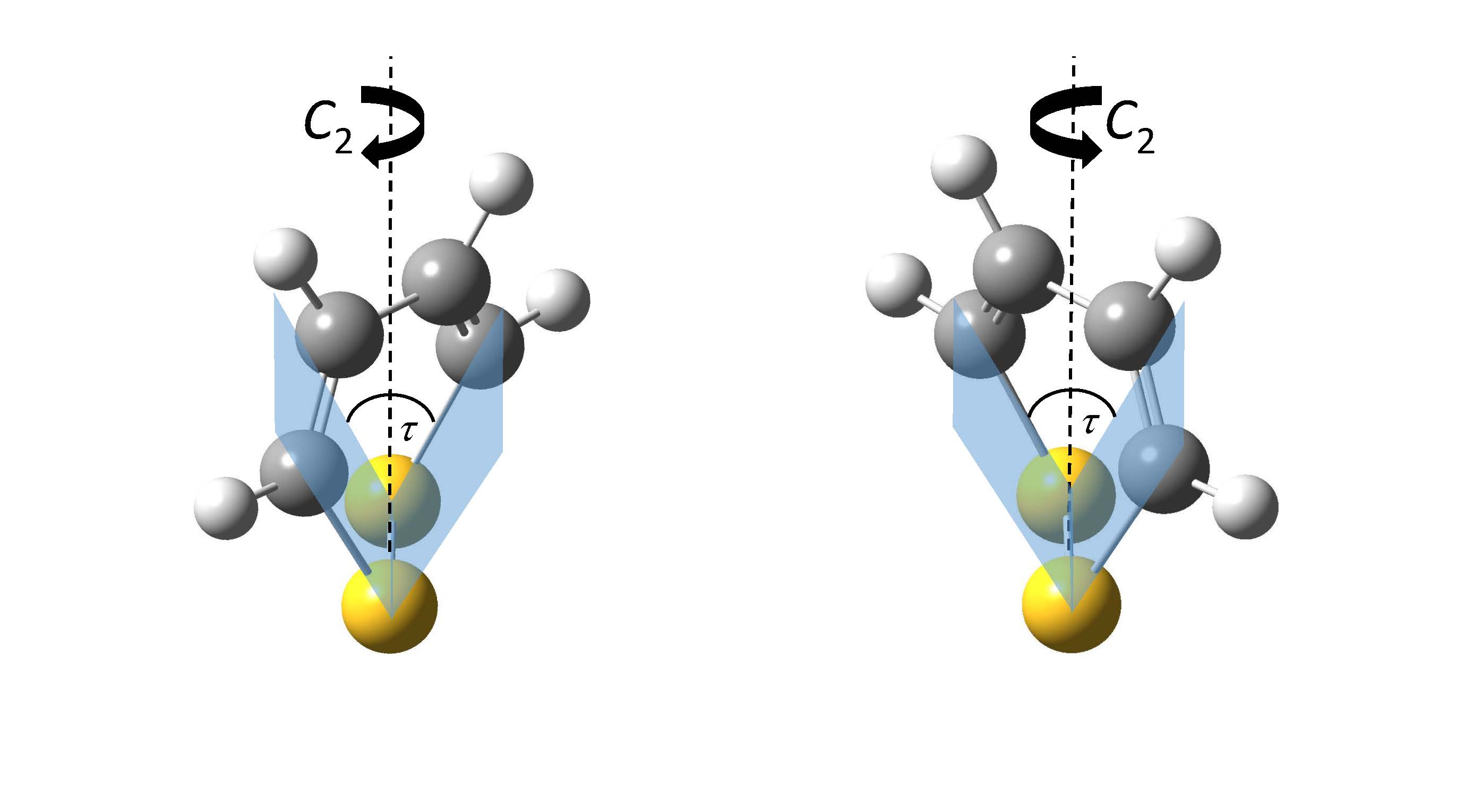 Figure 1. Two enantiomers of 1,2-dithiine (C4H4S2), left P, right M enantiomer.
