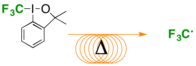 Since the original conception of Togni's reagents, they have become central to a plethora of trifluoromethylation strategies.[1] However, in stark contrast to the number of manuscripts published on their applications, dedicated mechanistic studies have been realized to a lesser extent. Nevertheless, a common feature found in most recent mechanistic schemes is the generation of an intermittent electrophilic trifluoromethyl radical (F3C•) by action of a specific chemical activator. In this regard, especially metals (e.g. Cu salts, photoredox catalysts) as well as electron-rich organic materials (e.g. arenes, organic anions) are popular choices since these can potentially accomplish a single-electron reduction of the reagents. Most recently, we corroborated this elementary reduction step by means of pulse radiolysis and by relying on the solvated electron.[2] The present contribution showcases that simple thermal activation of Togni's reagent also furnishes F3C•!