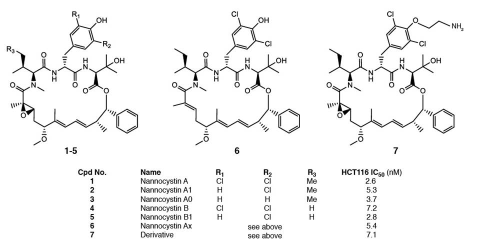 [2] P. Krastel, S. Roggo, M. Schirle, N. Ross, F. Perruccio, P. Aspesi, T. Aust, K. Buntin, D. Estoppey, B. Liechty, F. Mapa, K. Memmert, H. Miller, X. Pan, R. Riedl, C. Thibaut, J. Thomas, T. Wagner, E. Weber, X. Xie, E. Schmitt, D. Hoepfner (2015), Nannocystin A: an elongation factor 1 inhibitor from myxobacteria with differential anticancer properties. Angewandte Chemie International Edition 54, 10149-10154.