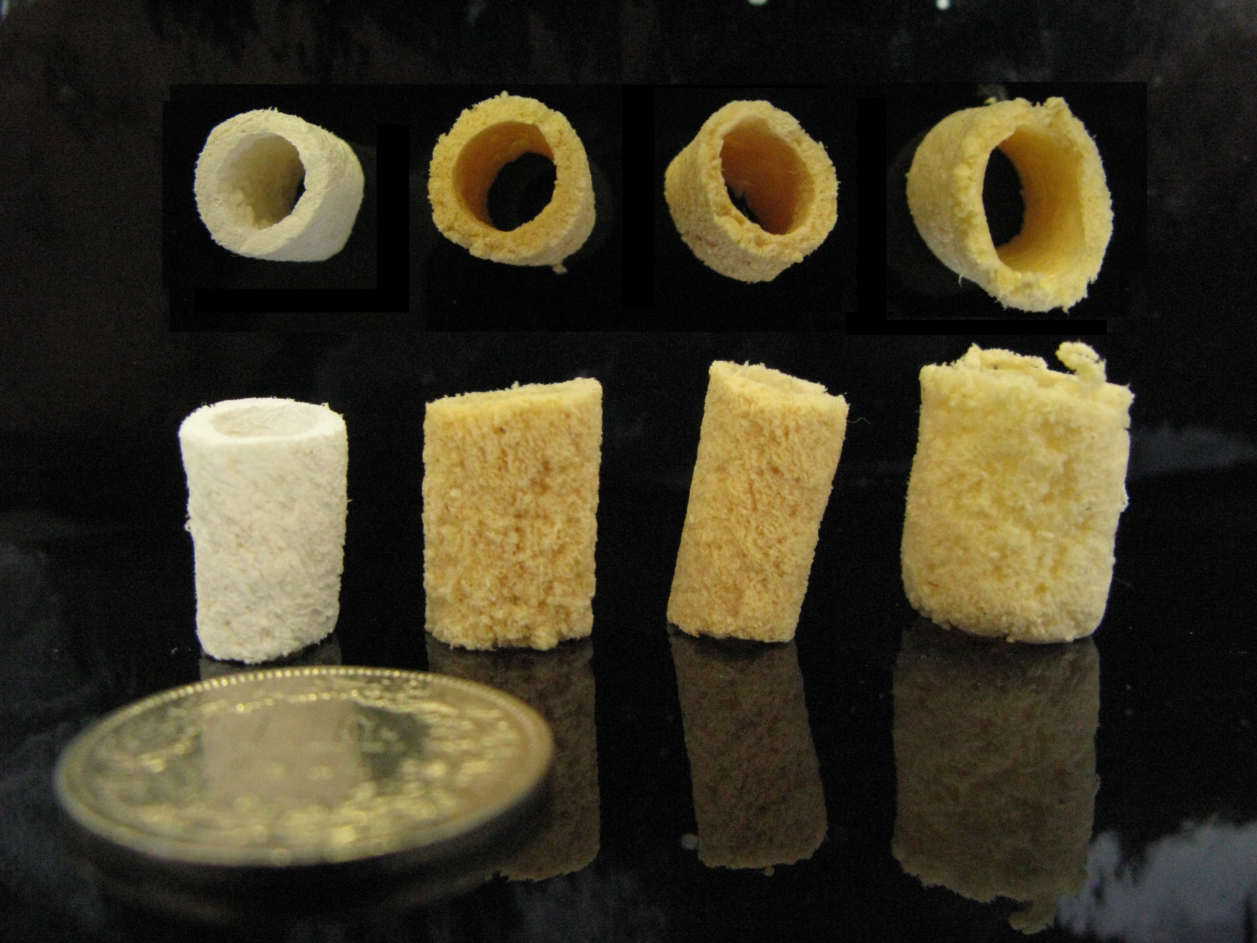 Tubular organs are ubiquitously found within the human body and include blood vessel, trachea gastrointestinal tract and urinary tract. These complex tubular tissues are composed of different types of cells, extracellular matrix and proteins but share the functional purpose of transporting complex nutrients in liquid or solid form. Using active contractions of muscles placed around the organ and specific cells within the lumen, transportation requires the underlining scaffold to be adaptable to various conditions. Repair and regeneration of these tubular organs is of great interest due to the high amount of surgeries performed annually. However, the design and fabrication of synthetic scaffolds that mimic the mechanical and structural characteristics of their natural counterparts appears more difficult than expected. Here, we show the construction and comparison of different tubular structures fabricated via the combination of two-dimensional (2D) electrospinning and the freeze-casting method.[1] Together these techniques allow us to create 3D tubular scaffolds with high open porosity and adaptable mechanical properties depending upon the polymer used.