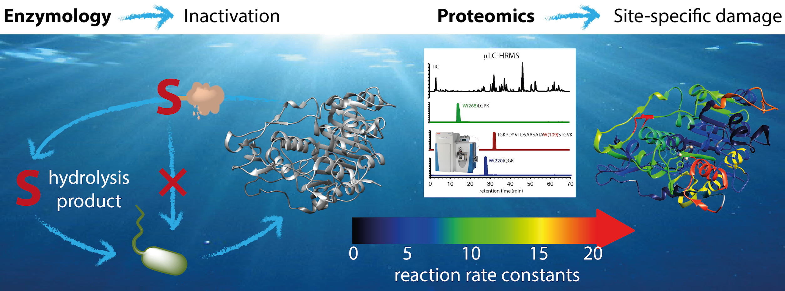 By employing enzyme specific proteomics techniques and enzymology we study site-specific damage in the macromolecular structure of enzymes and inactivation rate constants. Our approach to study intermolecular processes within the higher order structure of enzymes can also be applied to various processes besides photochemistry.