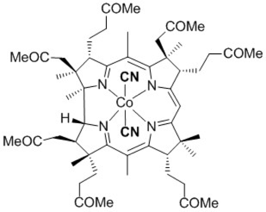 CyanoKit® is based on an immobilised corrin-based chemosensor1 that allows the colorimetric detection of endogenous cyanide in water and biological samples such as foodstuffs2 and blood3. The mechanism of detection is based on a colour change, from orange to violet, of the chemosensor once its cobalt-centre binds to cyanide. The colour change is caused by the altered π-π* transitions of the corrin macrocycle (shown in Figure 1), which leads to a major bathochromic shift of its absorption maxima.