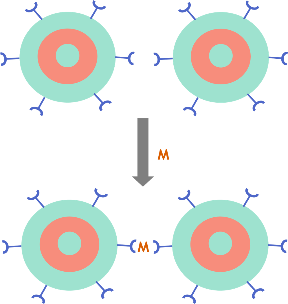 We show how the chelating power of bis(2,2':6',2''-terpyridine)metal(II) complexes can be applied to 'zip' together co-block polymer vesicles to give pre-organized assemblies.1 Different approaches have been used to functionalize polymer vesicles which condense with appropriately functionalized 2,2':6',2''-terpyridine (tpy) domains; sequential reaction with metal ions e.g. Fe2+ leads to an organized assembly. All reactions are carried out under ambient conditions and in aqueous media. The principle of the procedure is shown in the scheme below: